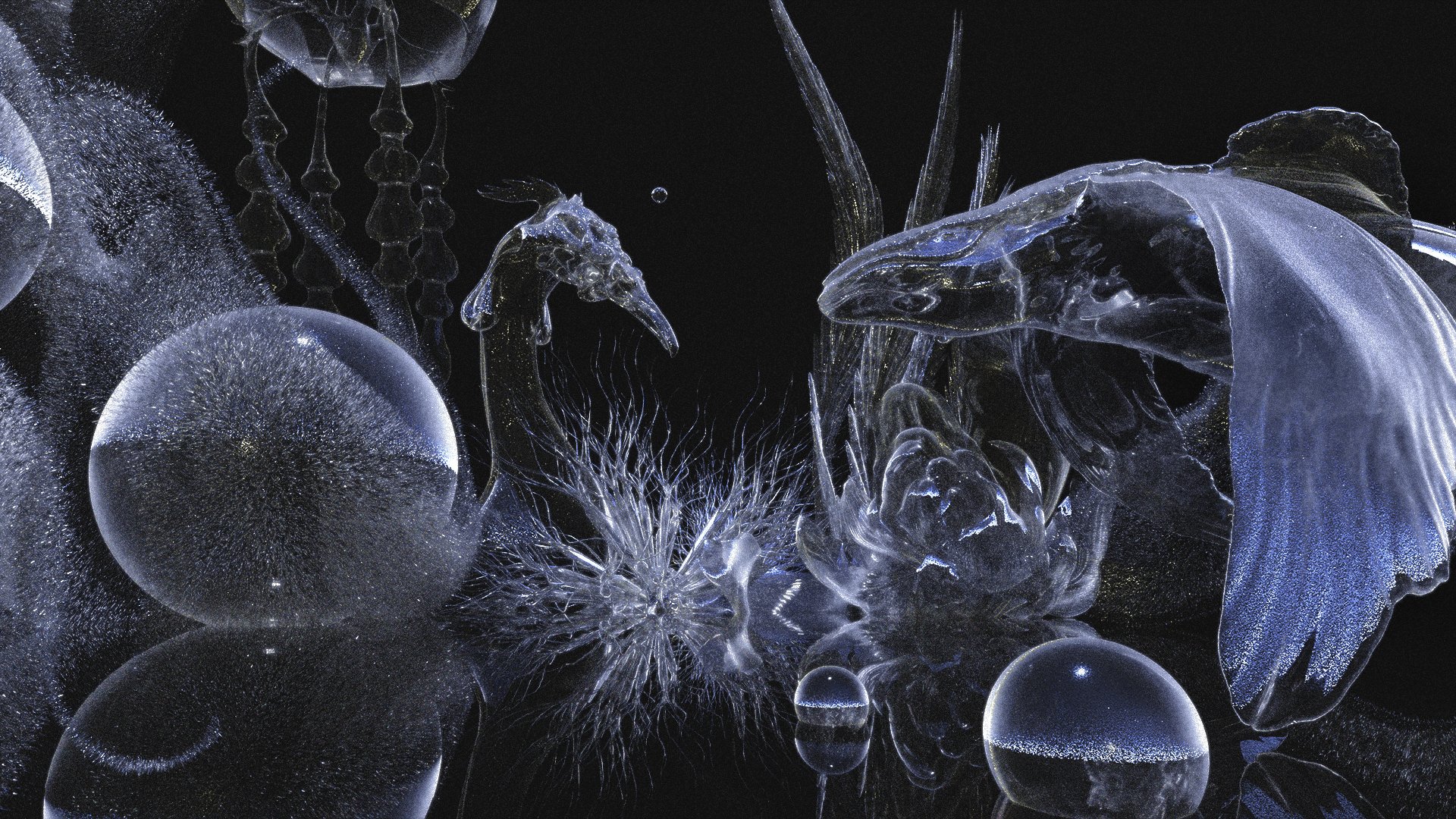 LINCHIAHSIN creates fictional life forms to portray how energy gradually condenses into shape within the unseen universe — like a series of silent births.